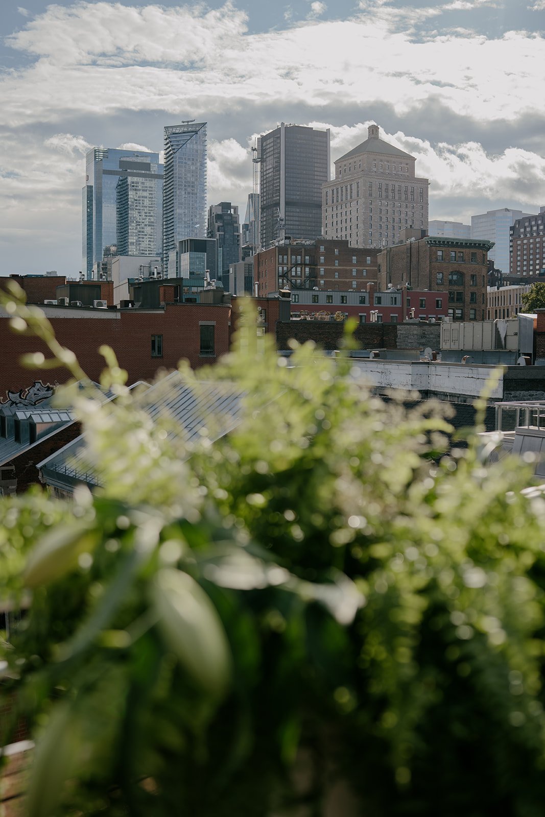 Vue sur les toits historiques de la ville et ambiance chic.